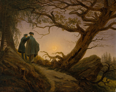 Enjoy this slide show featuring an early photograph of the Moon, Caspar David Friedrich’s Romanticist landscape, a Nepalese mandala of Chandra, god of the Moon, all courtesy of the Metropolitan Museum of Art; Yamamoto Baiitsu’s painting of the Moon and waves from the Philadelphia Museum of Art Collection; and an Iranian manuscript illumination featuring the angel Israfil holding the Moon from the collection of the Museum of Fine Arts, Boston.