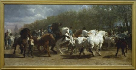 We conclude with Rosa Bonheur (1822-1899), animal painter par excellence, as evidenced here by the magnificent and monumental Horse Fair. By the end of her life, her paintings numbered nearly 1,000, with the addition of hundreds of watercolors, drawings, and sculptures. In 1865, she was the first woman to be decorated as a Knight of the Legion of Honor, elevated to Officer in 1894. In spite of her acclaim, soon after her death Bonheur’s realistic, tenebrist works were eclipsed by the taste for Impressionism and they fell out of fashion. In the 1980s her critical fortunes began to rise with a biography by the critic Dore Ashton. The Musée d’Orsay is organizing a major retrospective of Bonheur’s work, fall 2022-winter 2023. It is co-curated by the Château de Rosa Bonheur, the artist’s beloved home and atelier, where a lucky visitor can experience her world first-hand.