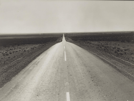 This haunting photograph depicting highway U.S. 54, the west-bound route taken by many families who hoped to find work in California, comes to us from the Metropolitan Museum of Art.